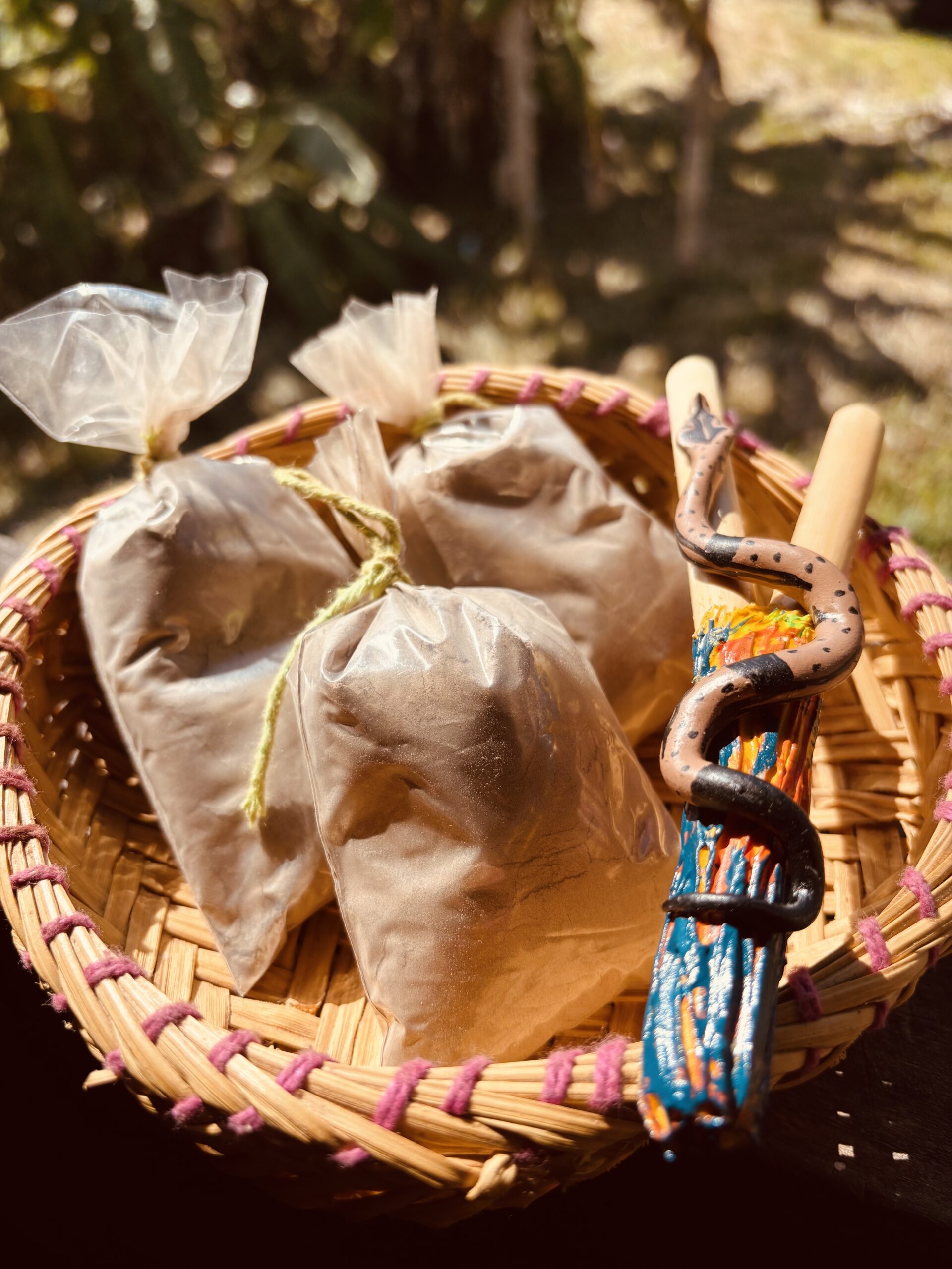 São 300 gramas de Rapé — uma quantidade pensada para quem pratica com frequência, conduz trabalhos, atende irmãos ou mantém uma rotina espiritual firme.